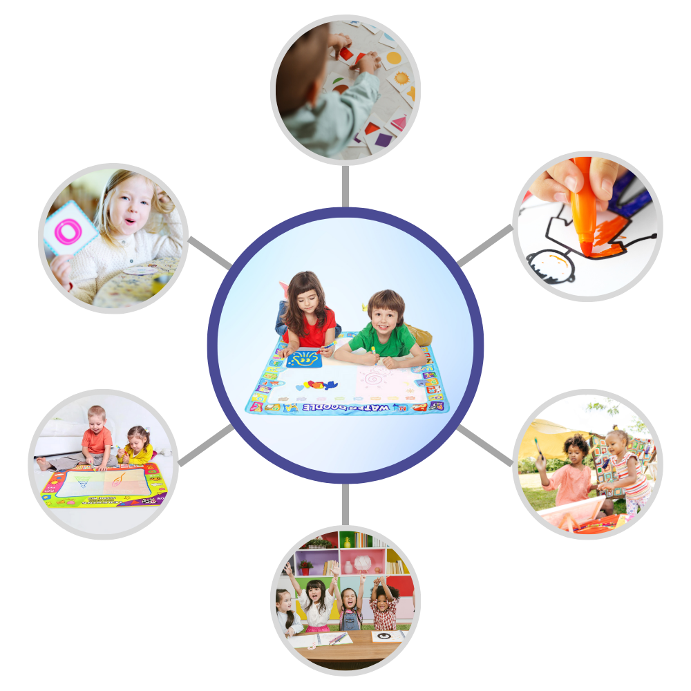 The versatility of the Stimulating Water Doodle Mat extends beyond just drawing. It can be used for a variety of educational and recreational activities, making it a valuable tool for learning and play. Parents and educators can use the mat to teach letters, numbers, shapes, and colors, turning learning into an interactive experience. It's also suitable for group play, encouraging social interaction and teamwork among children. Whether it's used at home, in the classroom, or outdoors, the Water Doodle Mat adapts to various settings, providing a multifunctional platform for children's development and enjoyment.